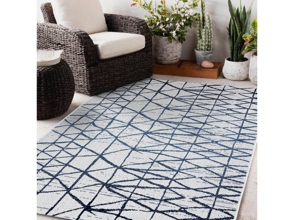 Bezvlasý koberec Karlos - vzor 21 - modrý/bílý