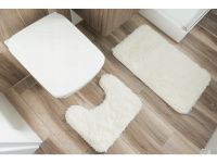 Dále si představíme chlupaté koberečky a předložky do koupelny, které nabízíme také v setech k toaletě. Typ a délka chlupů jsou stejné jako mají plyšové koberce, které jsme popisovali výše, jejich podklad je však uzpůsoben k použití v koupelně, který skvěle izoluje vodu, tím pádem nedojde k nasáknutí vody do zbytku koberce.