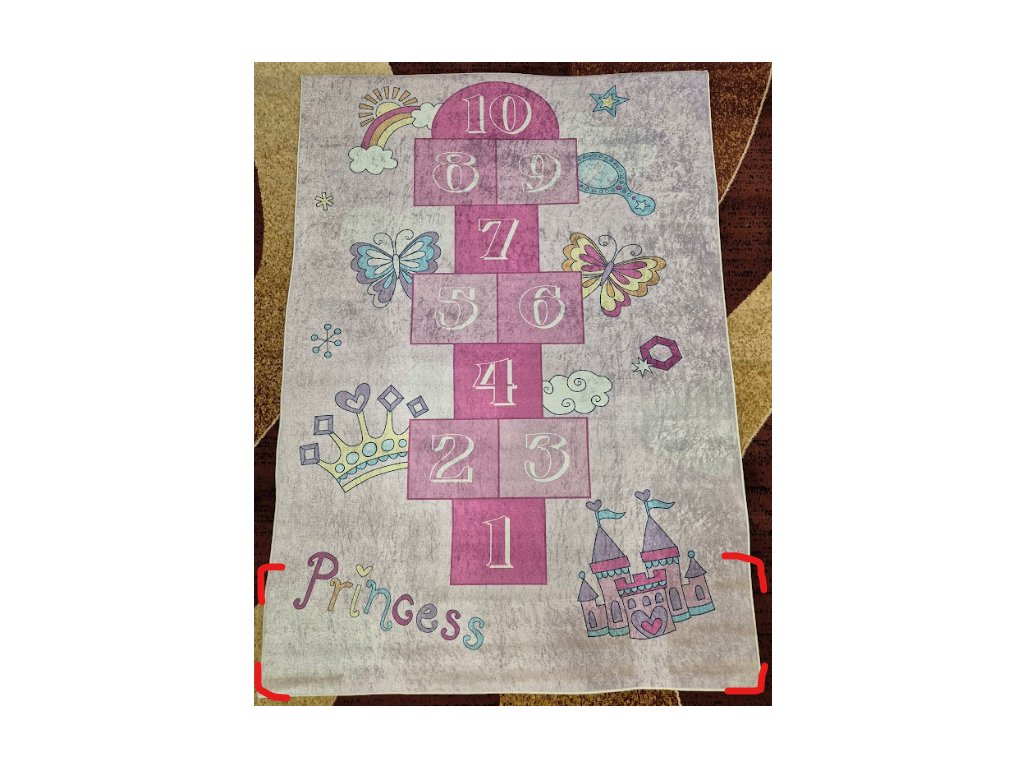 Nepoužitý dětský koberec ušpiněný z přepravy kvůli chybě v obalu. Fotografie zašpinění jsou umístěny v galerii za úvodní fotkou.