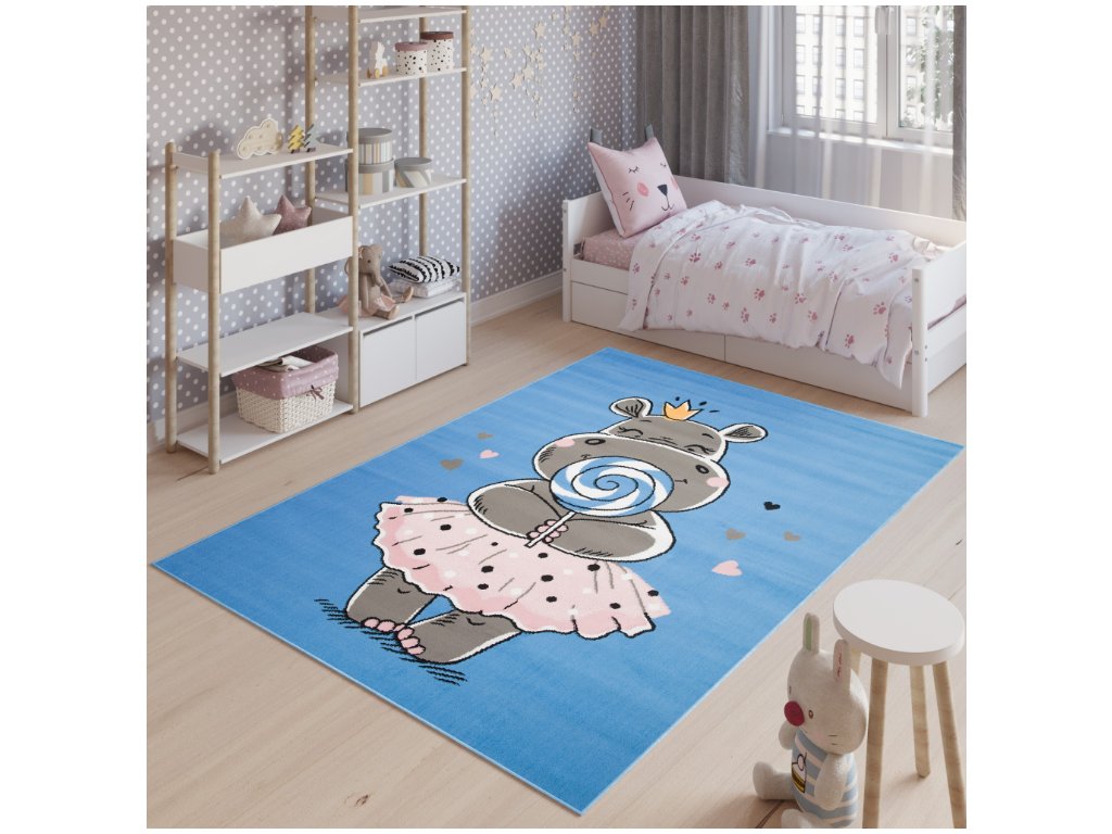 Dětský koberec Jolly Kids - hrošík 1 - modrý