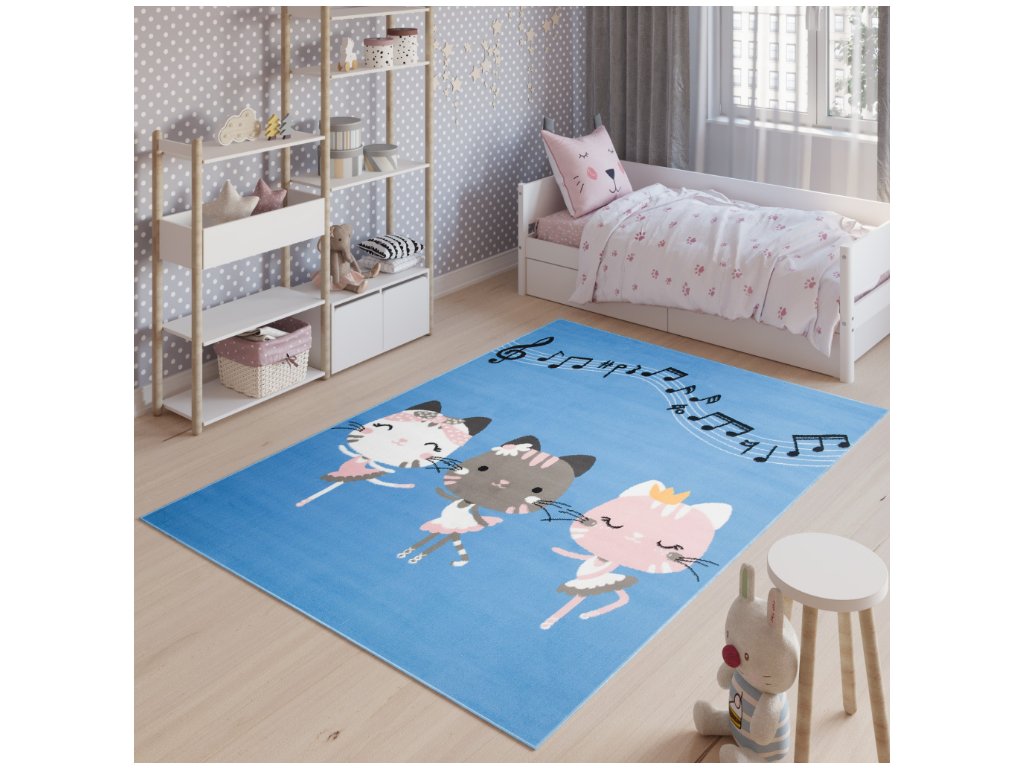 Dětský koberec Jolly Kids - kočičky 2 - modrý