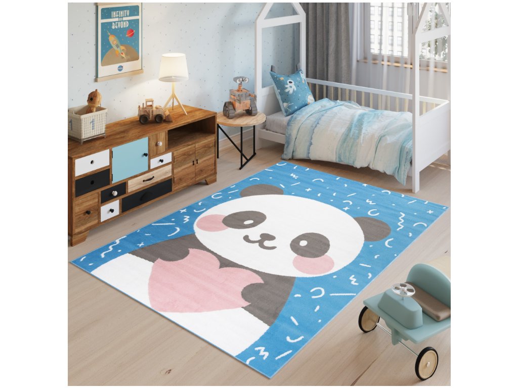 Dětský koberec Jolly Kids - panda 1 - modrý