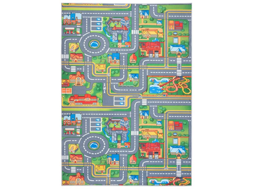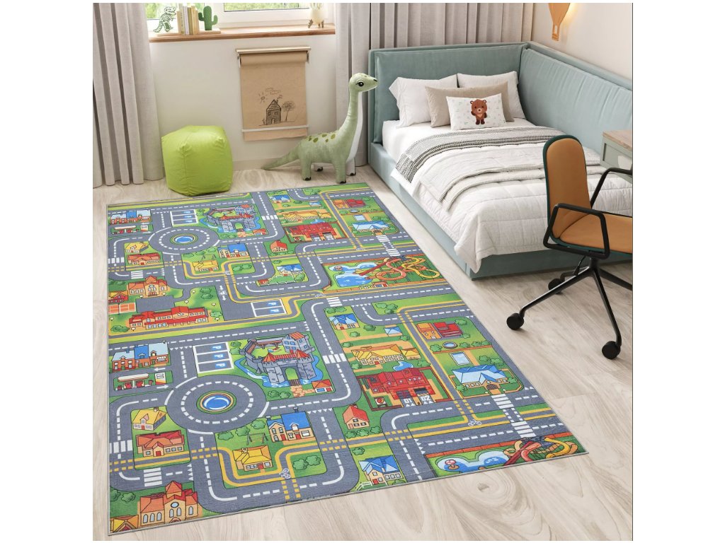 Dětský koberec - SILNICE A MĚSTO - světle zelený