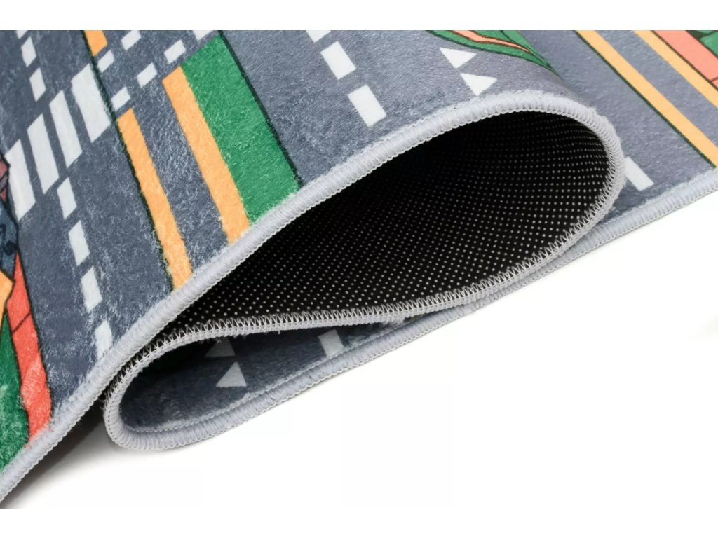Nemusíte se bát, že si dítě bude hrát na studené zemi, díky izolačním vlastnostem koberce bude od chladu země chráněno. Koberce tohoto typu se velmi snadno udržují čisté, protože díky bezvlasé technologii výroby se špína nedostane hluboko do vlákna. Pokud se koberec ušpiní, stačí jednoduše navlhčenou houbičkou setřít. Ke koberci doporučujeme zakoupit také protiskluzovou podložku (kusové varianty). Koberec má ze spodní strany maličké gumové body proti podkluzu, které běžnému podklouznutí zabrání. V případě dětských koberců je však vždy lepší použít protiskluzovou podložku (vlastní rozměr), jelikož ani protiskluzové body někdy nemusí v případě dětského skotačení stačit, zejména pokud máte v interiéru velmi kluzké podlahy.