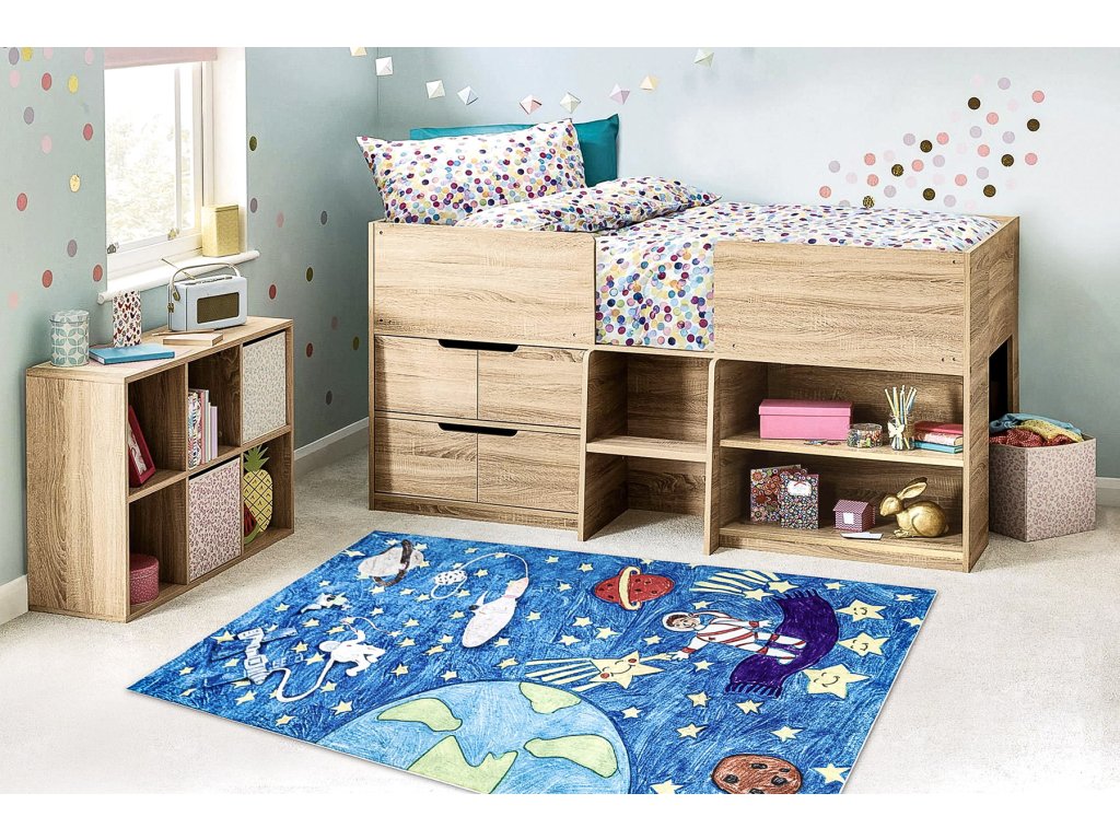 Dětský kusový koberec BAMBINO - vesmírné dobrodružství - modrý