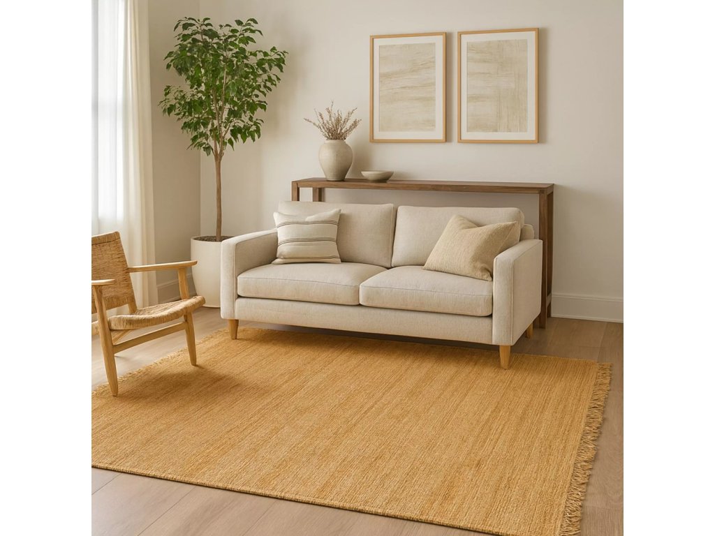 Koberec z přírodní juty. Každý kousek je jedinečný. Pokud chcete do vašeho interiéru nebo exteriéru vnést přírodní nádech, tento koberec je ideální kandidát. Perfektní také do těch míst, kde je častý provoz, koberec je velmi odolný a snadno se udržuje. Nedrží se v něm prach ani nečistoty. Stačí lehounce proklepnout a je zase jako nový. Vhodný také do domácností s mazlíčky, v koberci se chlupy neudrží, opět stačí rukou lehce vyklepat.