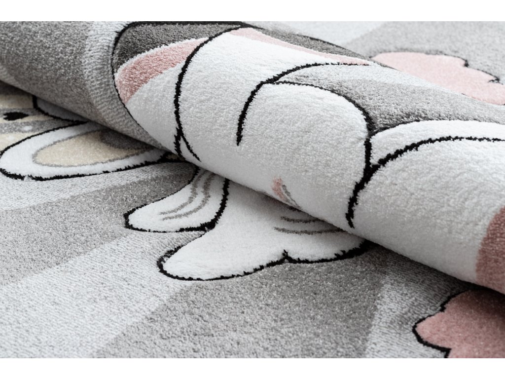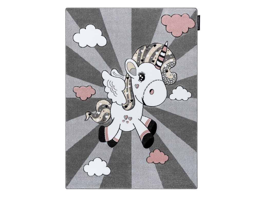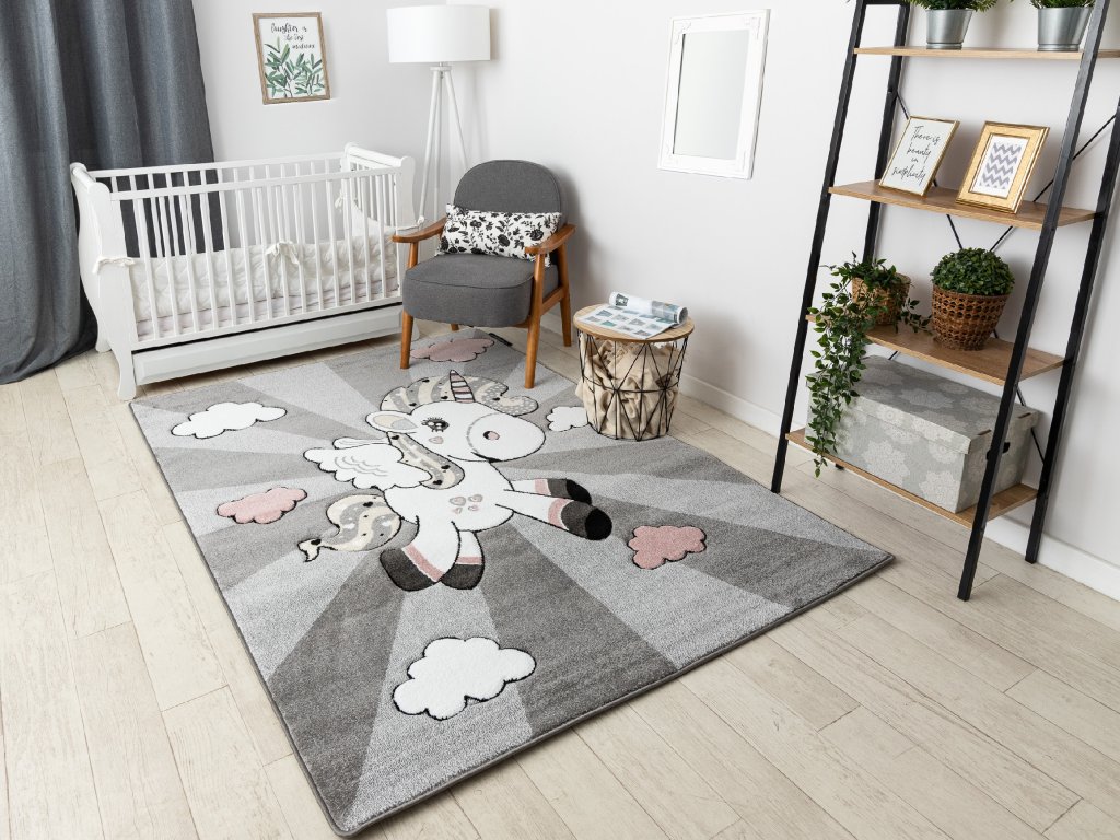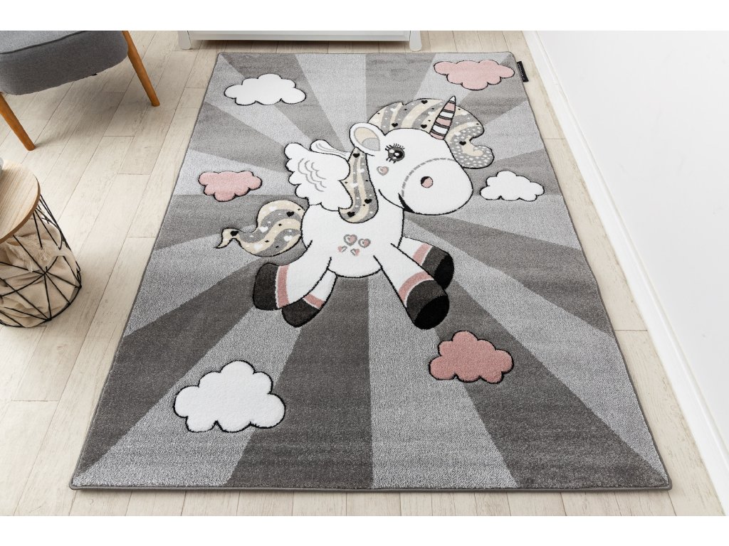 Krásný dětský koberec KINDER - jednorožec - šedý