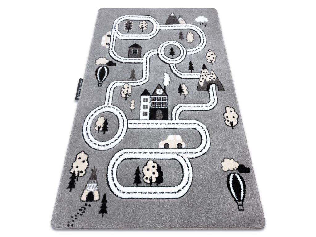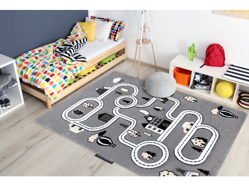 Krásný dětský koberec KINDER - městečko 2 - šedý