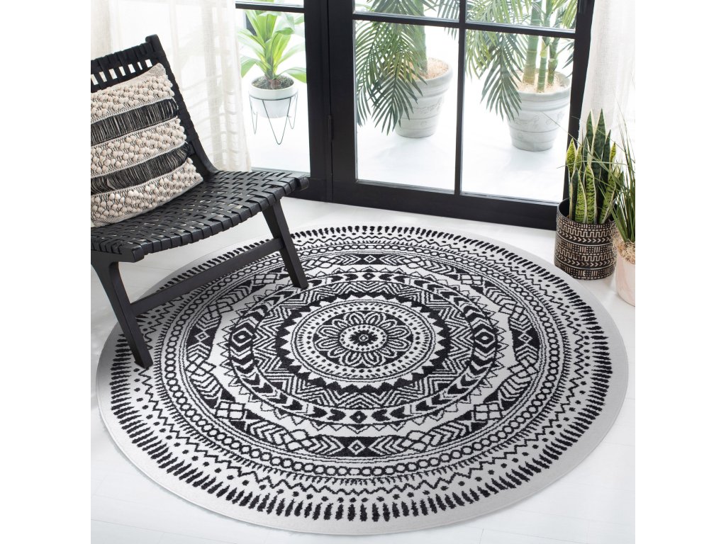 Kulatý dětský koberec FUNNY - indiánský vzor 2 - šedý