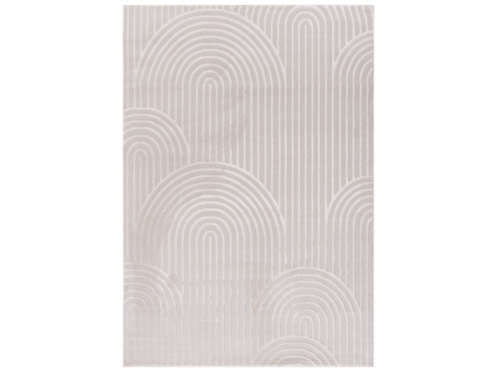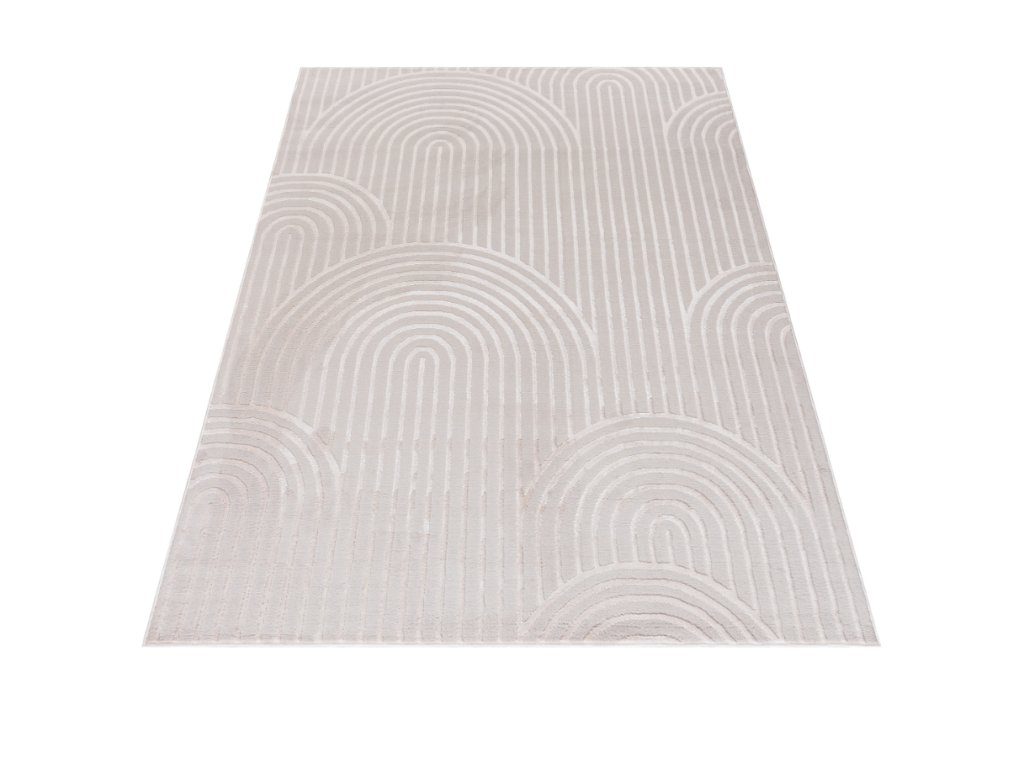 Krásný moderní koberec z kolekce Hellen s kružnicovým geometrickým vzorem. Výška vlasu je 9 mm při průměrné hmotnosti 1800 g/m2. Je vyroben z vláken Polypropylenu FRISE a Polyesteru. Snadná údržba.