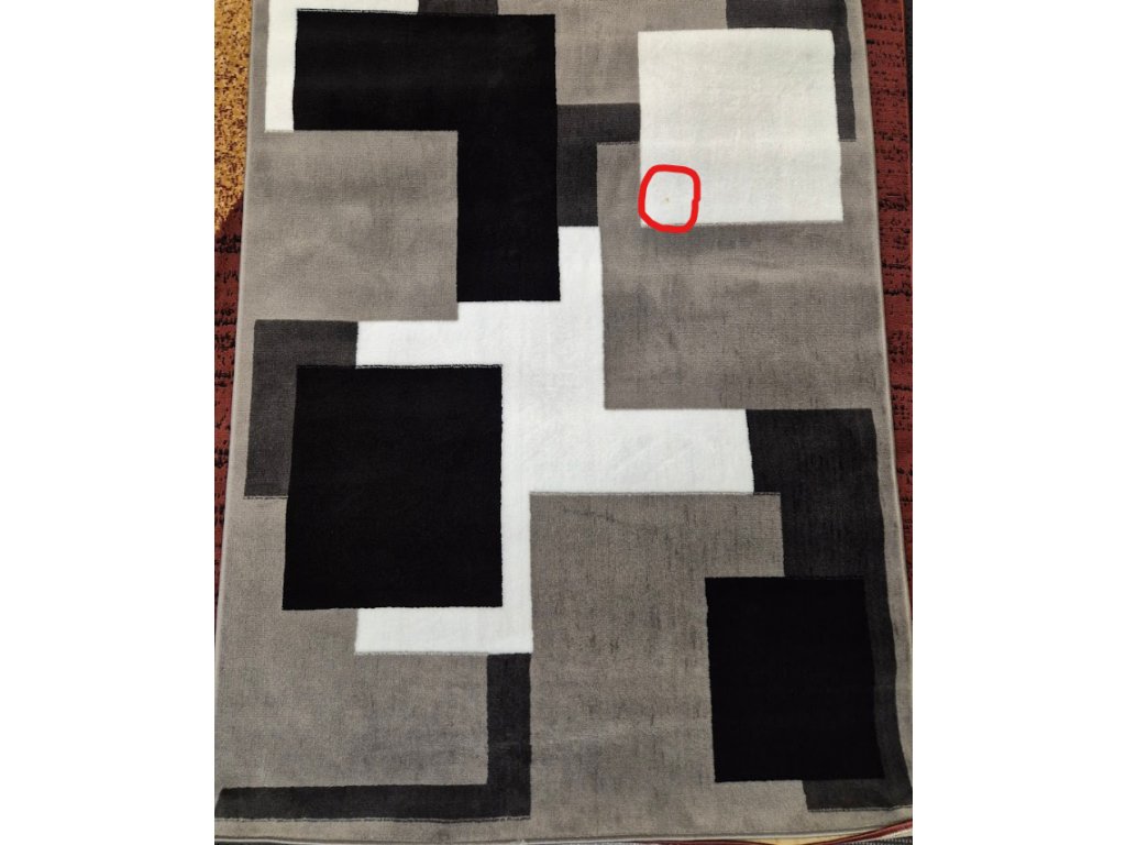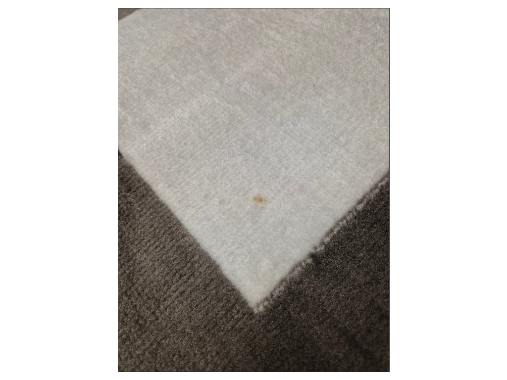 Koberec s vadou v barvě chlupů. Barevná chyba v bílém čtverci v rozsahu 0,5 cm. Fotografie vady jsou umístěny v galerii.