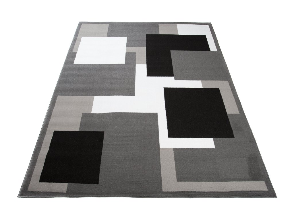 Moderní koberec Tap - čtverce - tmavě šedý/bílý (180x250 cm, vada)