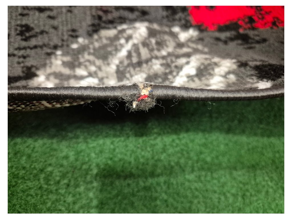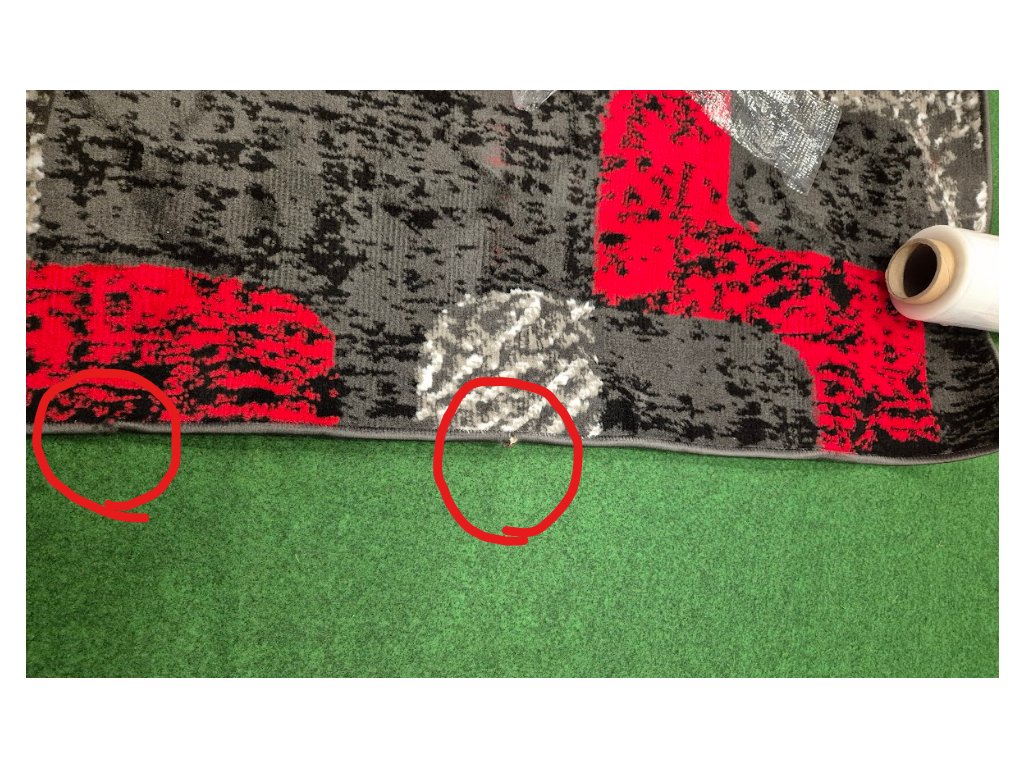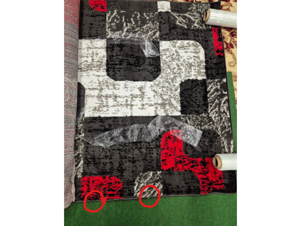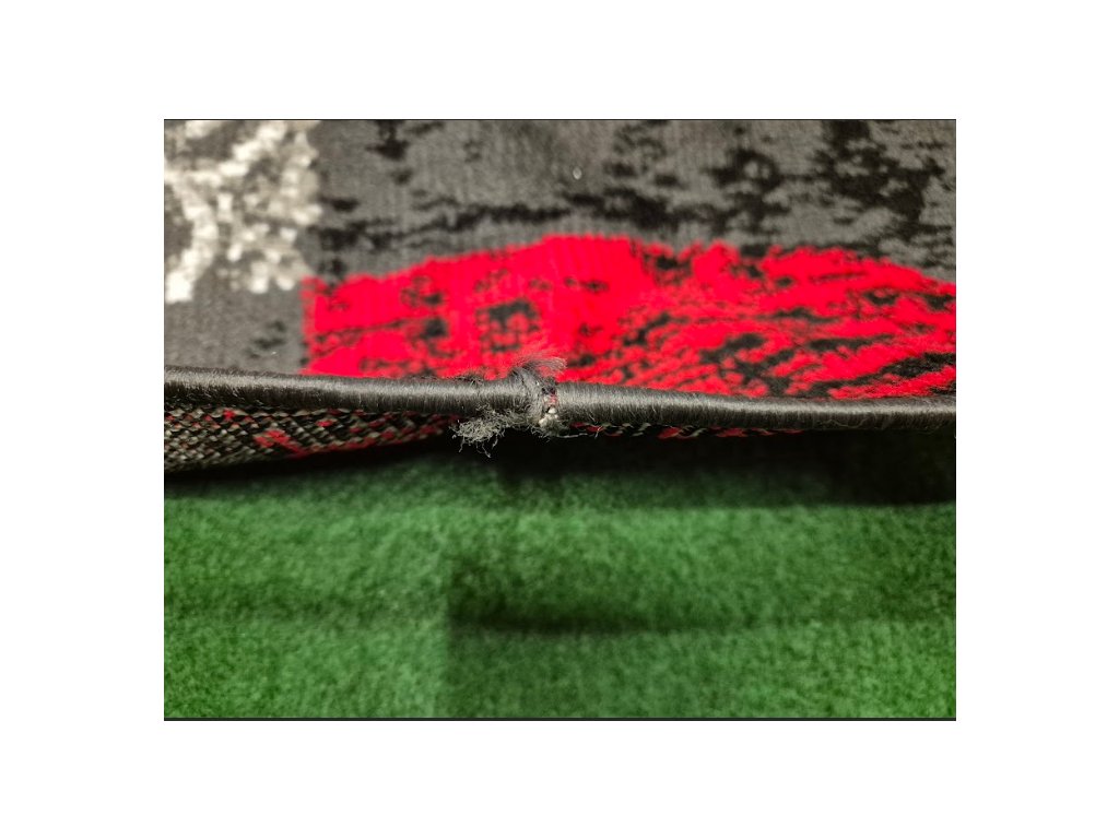 Poškozený koberec s vadou během přepravy. Poškozený lem v rozsahu 2 a 1 cm. Fotografie poškození jsou umístěny v galerii za úvodní fotkou.