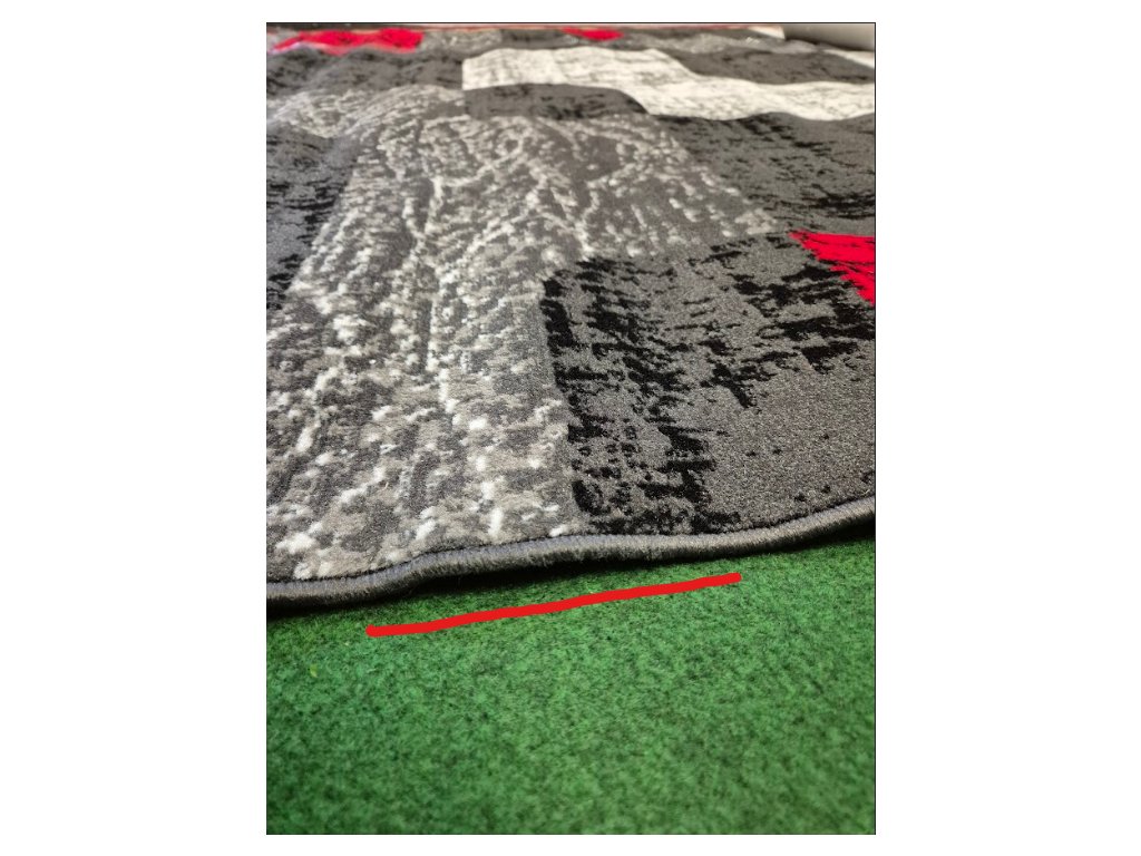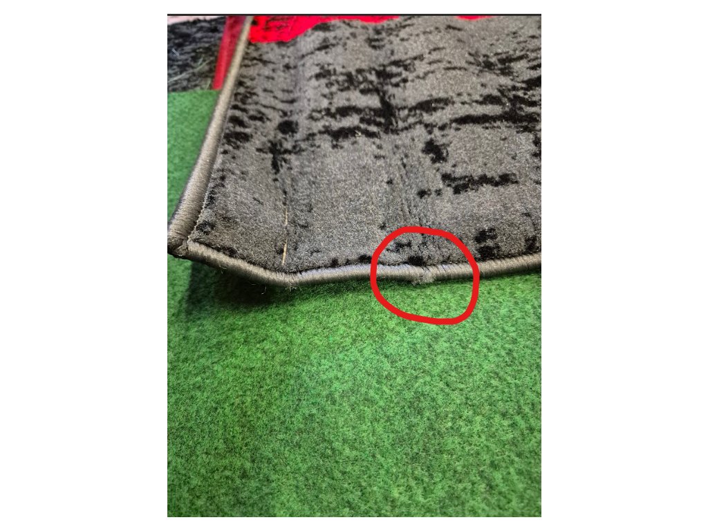 Poškozený koberec s vadou z přepravy. Poškozený okrajový lem (rozsah 5 a 1 cm). Fotografie poškození v galerii za úvodní fotkou.