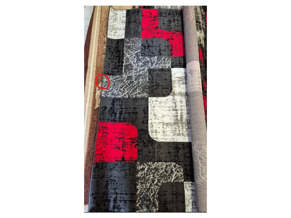 Poškozený koberec s vadou během přepravy. Poškozený okrajový lem v rozsahu 5 cm. Fotografie poškození jsou umístěny v galerii za úvodní fotkou.