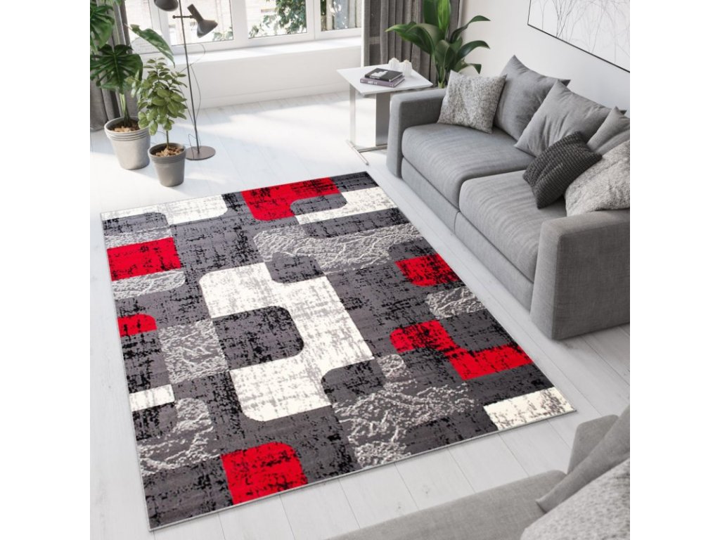 Moderní koberec Tap - geometrické tvary - červený/šedý (220x300 cm, vada)