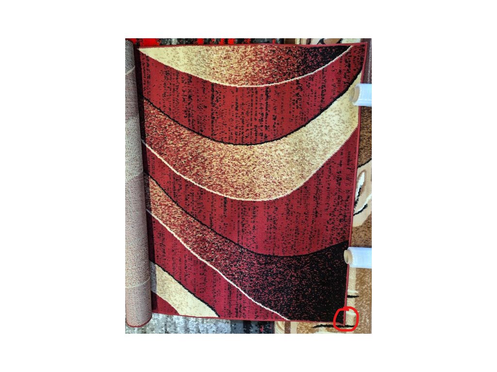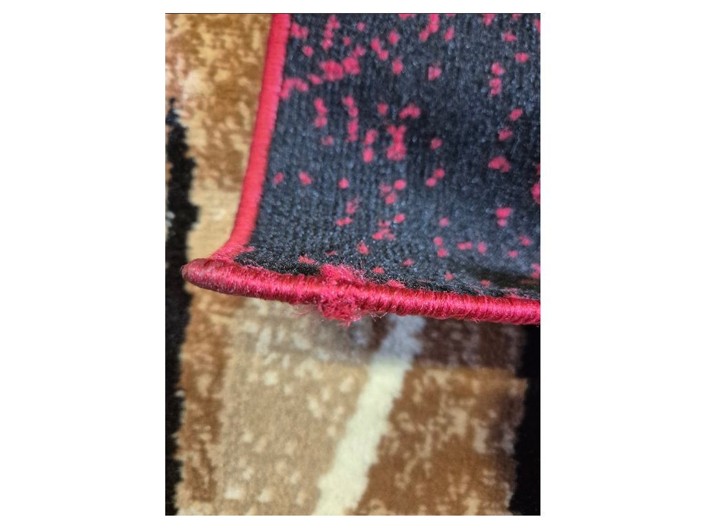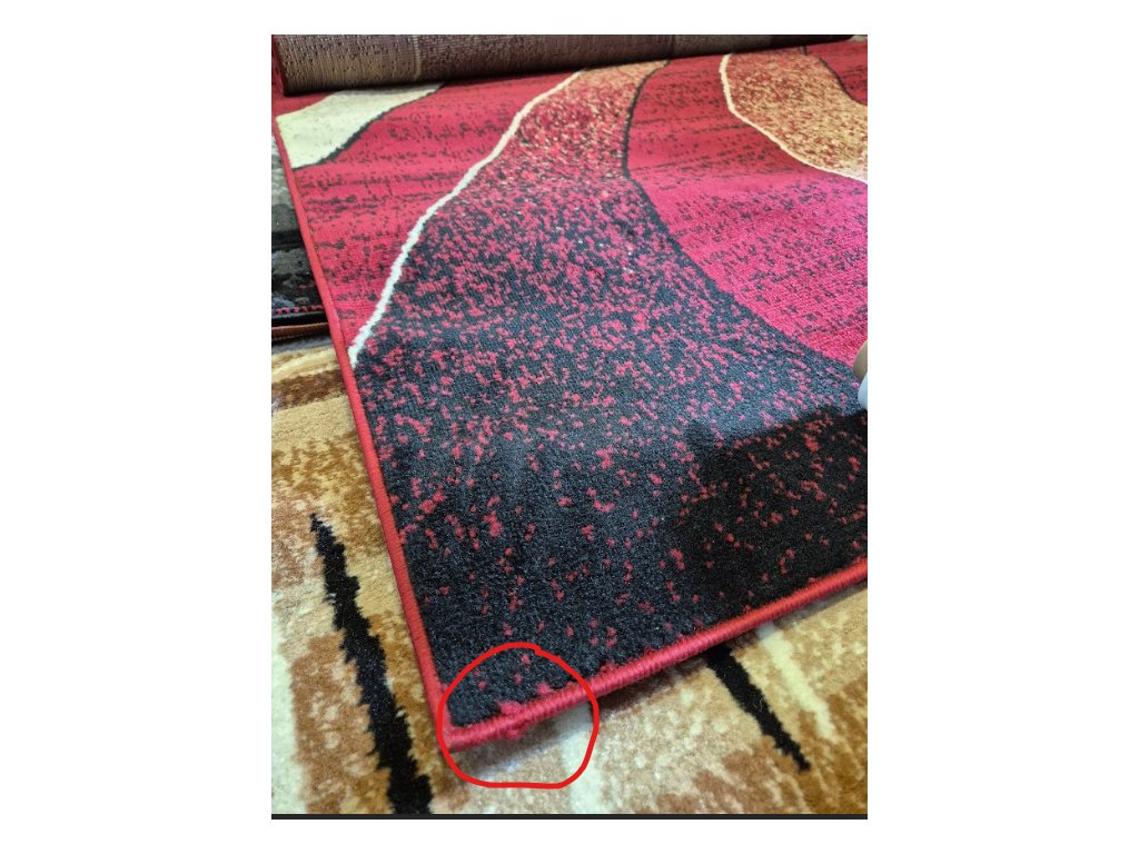 Poškozený koberec s vadou během přepravy. Poškozený okrajový lem v rozsahu 1 cm. Fotografie poškození jsou umístěny v galerii.
