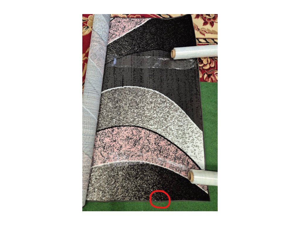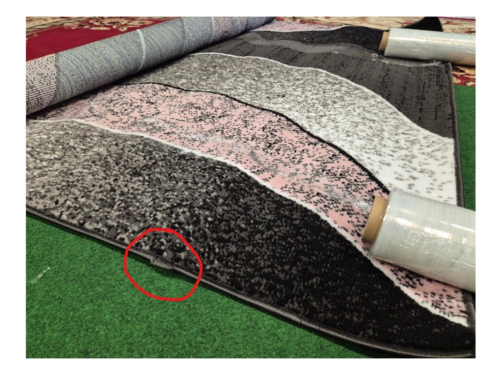 Poškozený koberec s vadou z přepravy. Poškozený okrajový lem (rozsah 3 cm). Fotografie poškození jsou umístěny v galerii za úvodní fotkou.