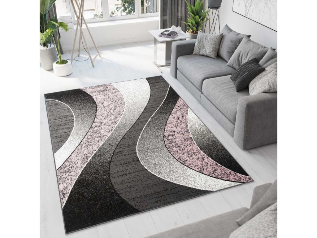 Moderní koberec Tap - vlnky - růžový (140x200 cm, vada)