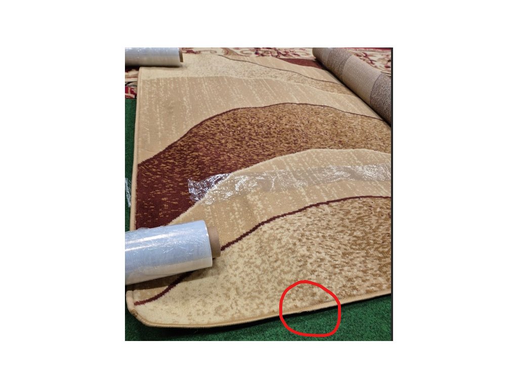 Poškozený koberec s vadou během přepravy. Poškozený lem v rozsahu 2 cm. Fotografie poškození jsou umístěny v galerii hned za úvodní fotkou.