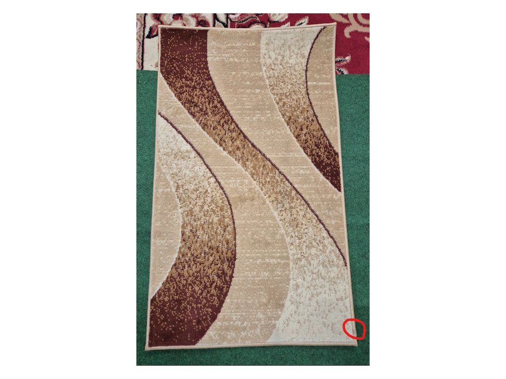 Poškozený koberec s vadou během přepravy. Poškozený lem v rozsahu 2 cm. Fotografie poškození jsou umístěny v galerii za úvodní fotkou.