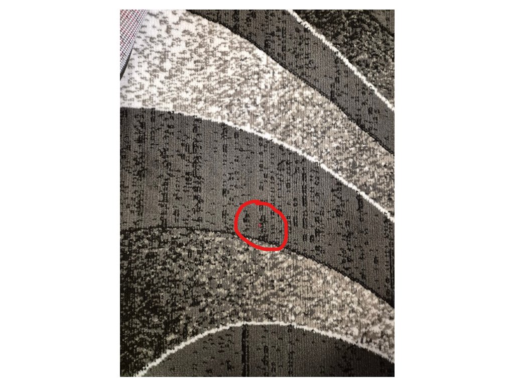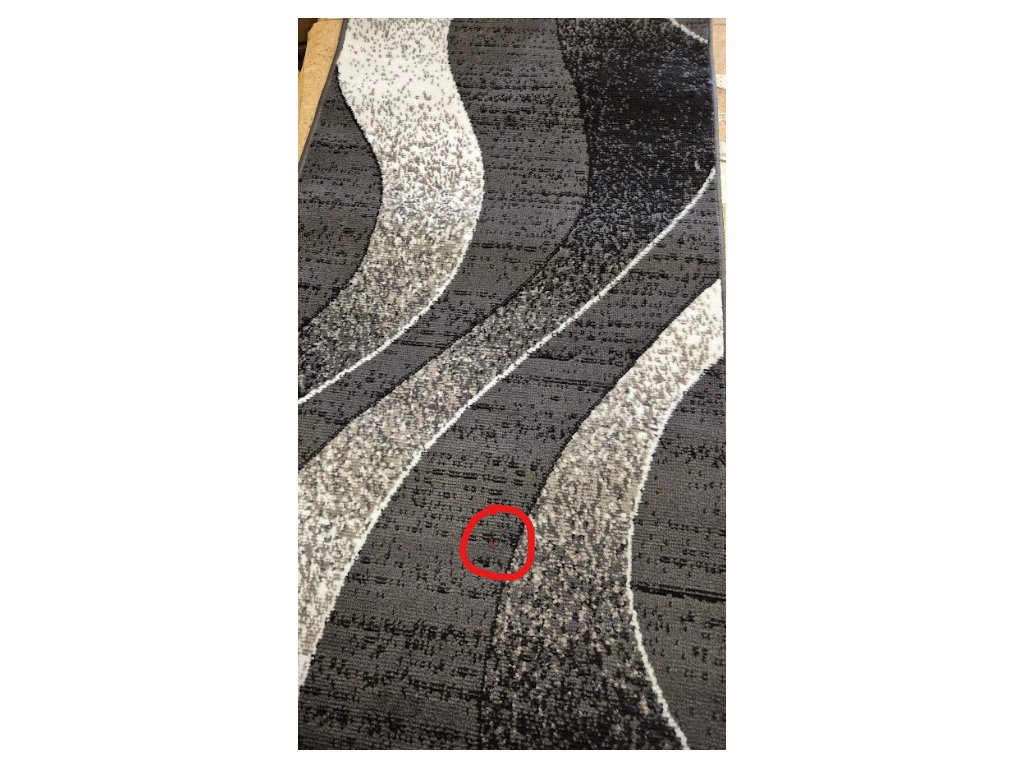 Koberec s chybou v barvě prošití z výroby. Barevná chyba v rozsahu 0,5 cm. Fotografie vady v galerii za úvodní fotkou.
