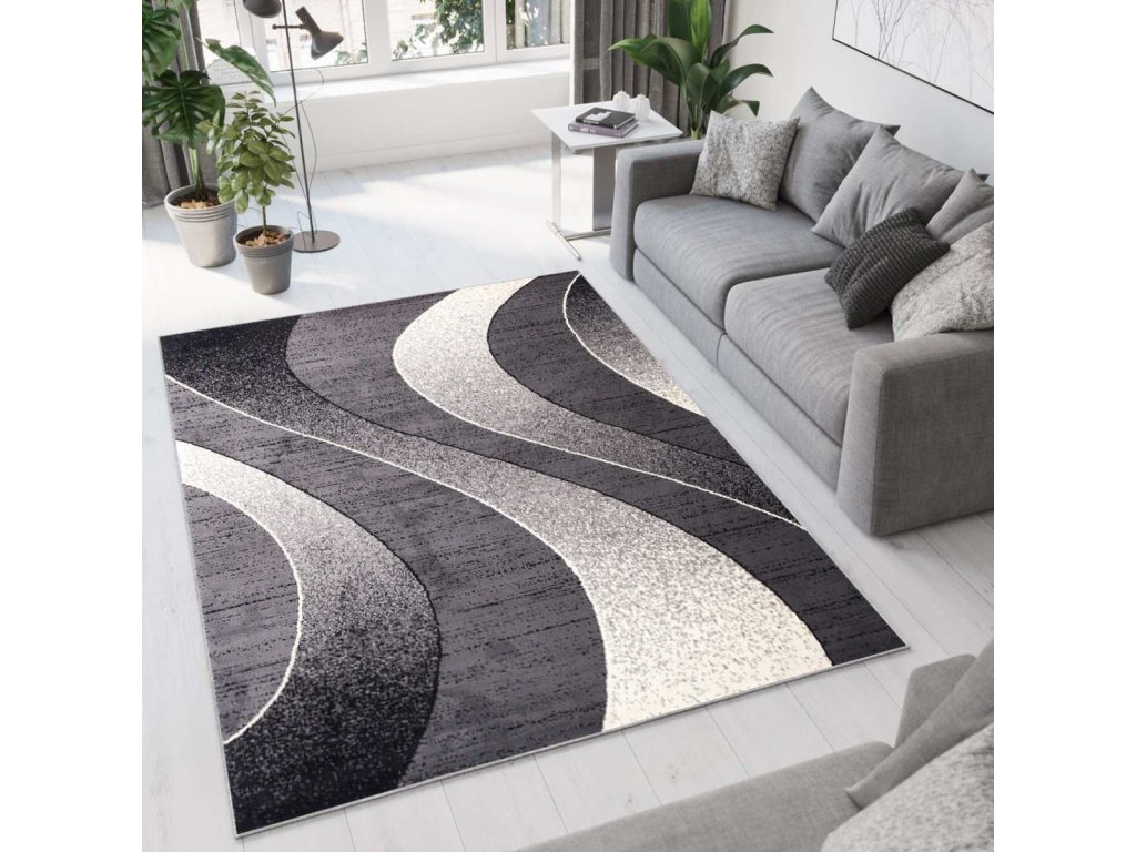 Moderní koberec Tap - vlnky 5 - tmavě šedý/bílý