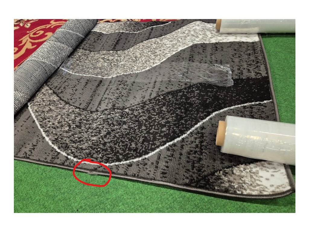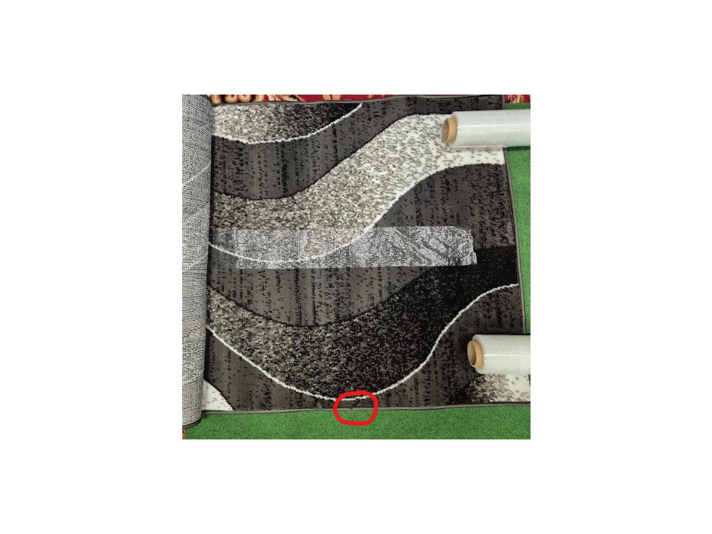 Poškozený koberec s vadou z přepravy. Poškozený okrajový lem (rozsah 2,5 cm). Fotografie poškození v galerii za úvodní fotkou.