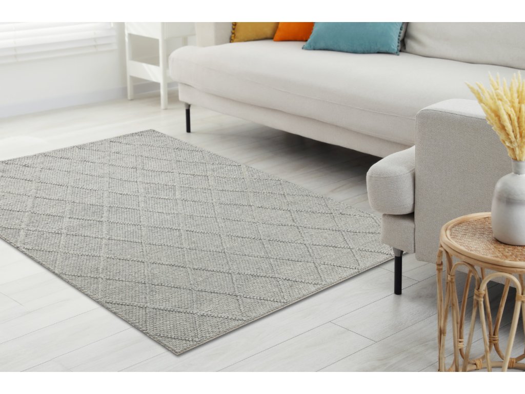 Ručně tkaný vlněný koberec Tarah - kosočtverce - šedý