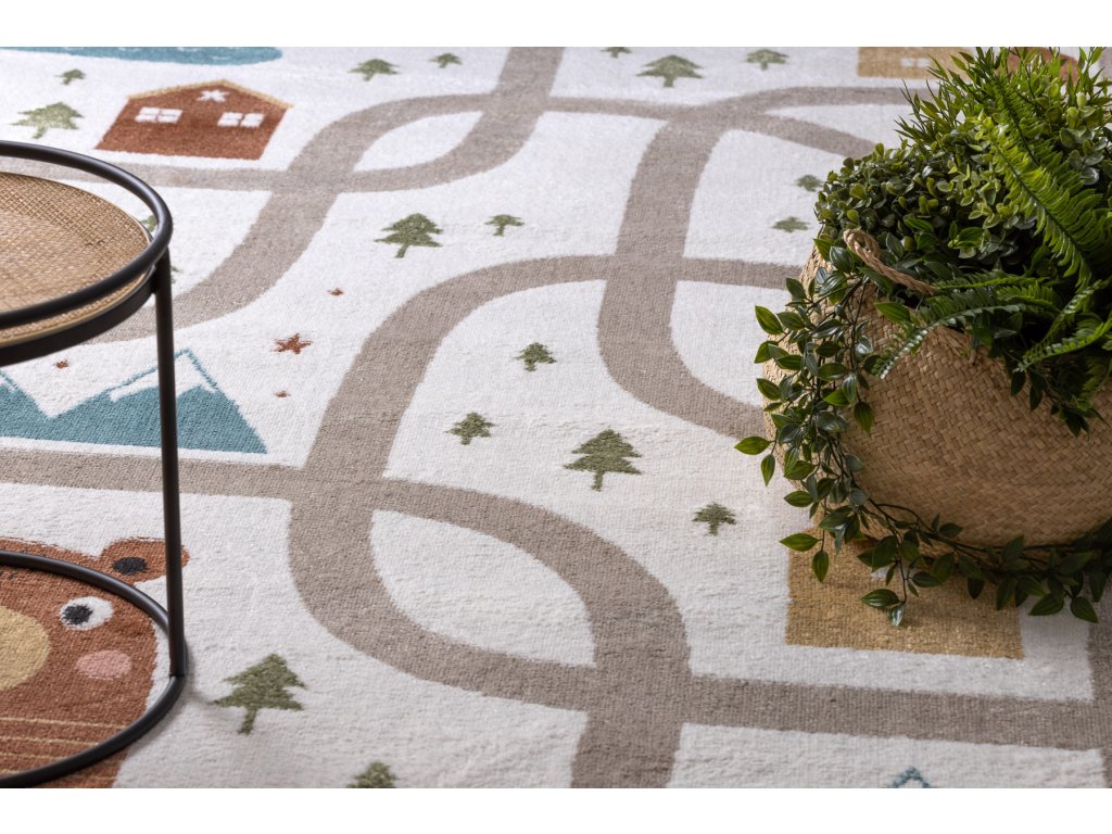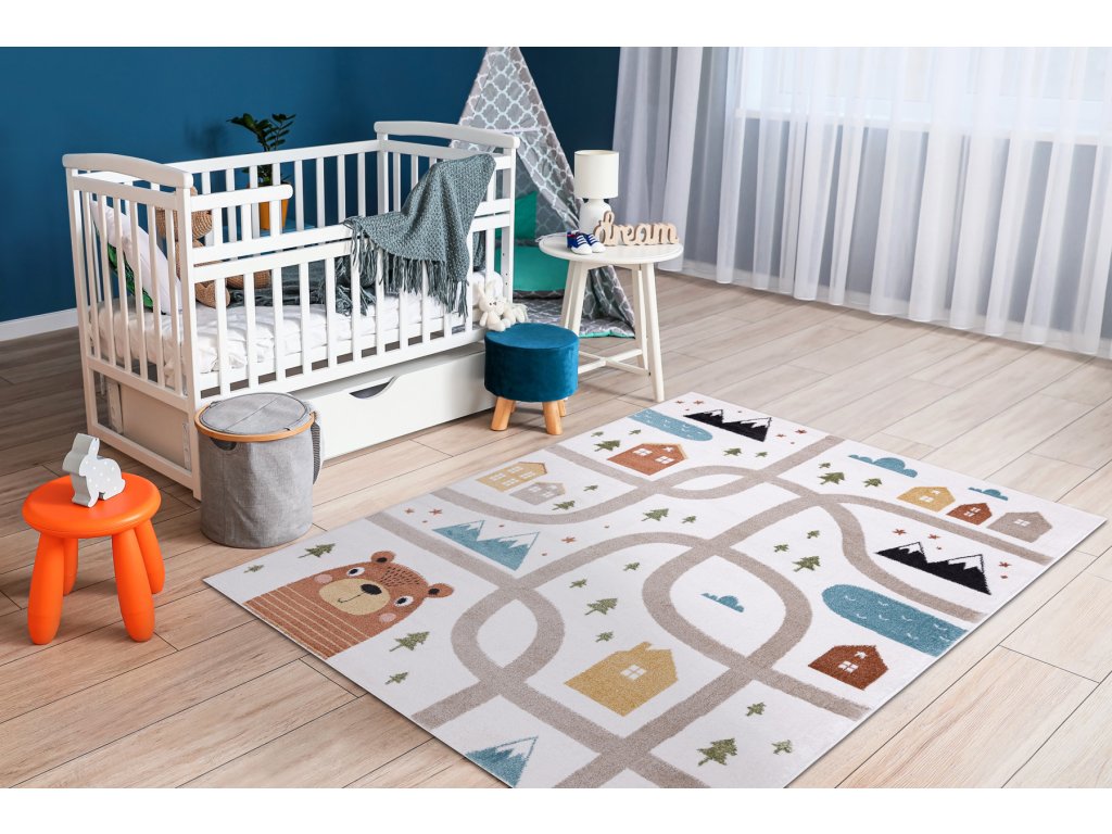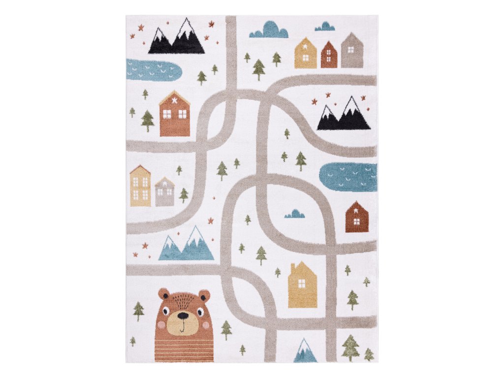Skvělý dětský koberec FUNNY - medvídek a uličky - krémový
