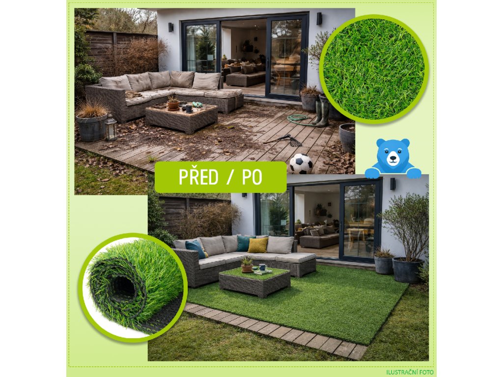 Ideální řešení pro sezonu jaro–léto, kdy chcete trávit čas venku – žádné starosti s údržbou živého trávníku.