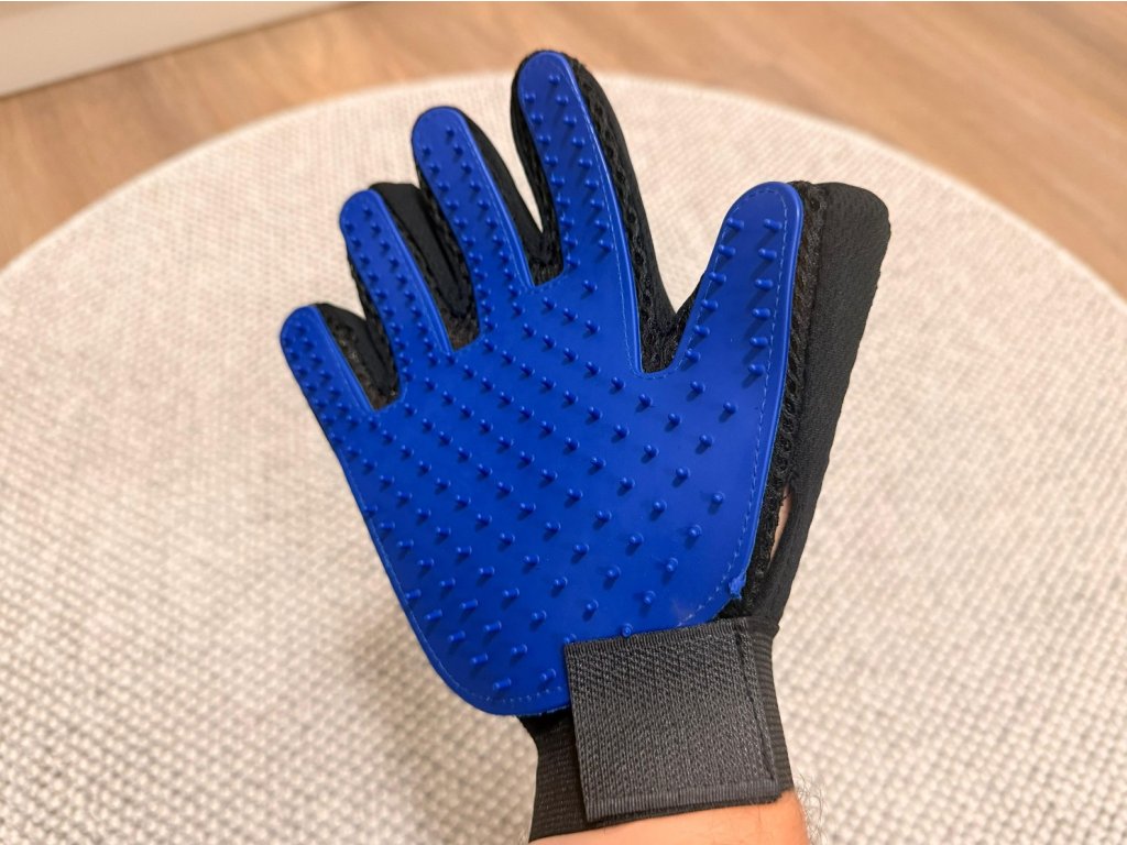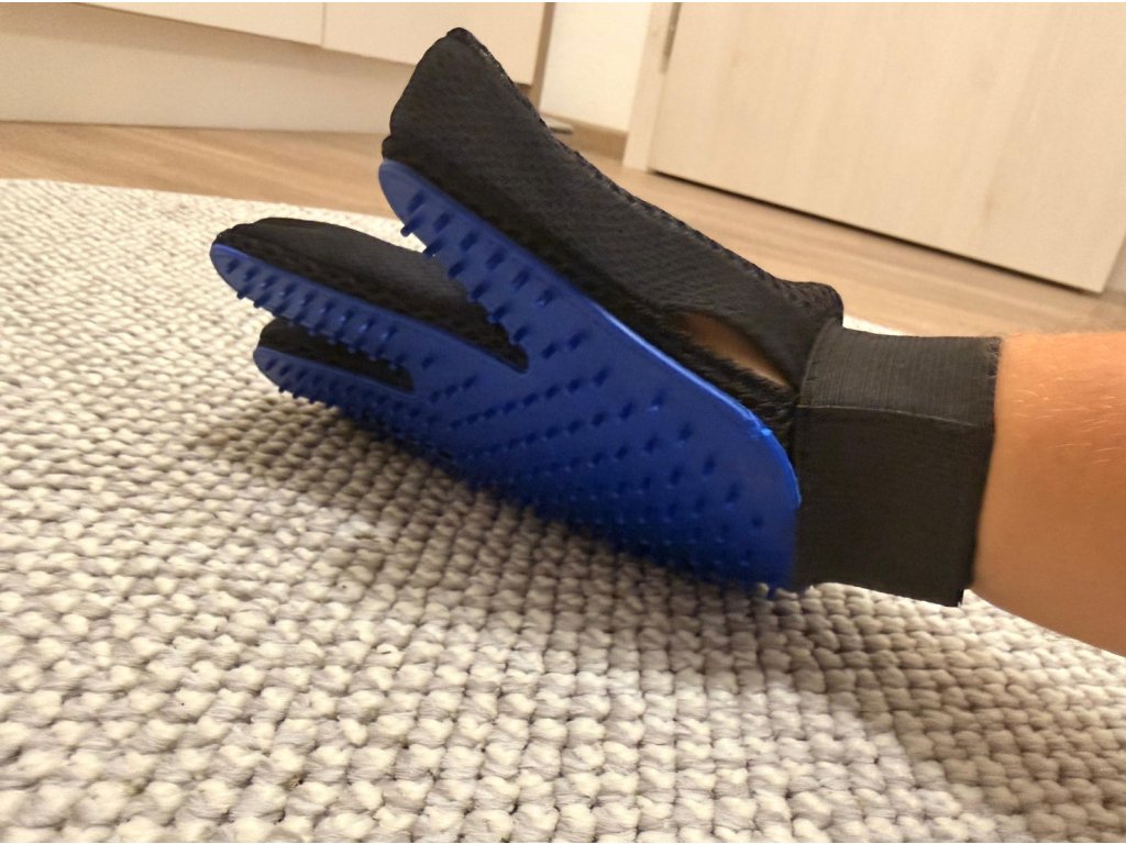 Odstraňte z koberce snadno zvířecí srst nebo vlasy. Rukavice má mnoho malých pevných bodů, které fungují jako plochý hřeben. Lze využít také na vyčesávání domácích mazlíčků.